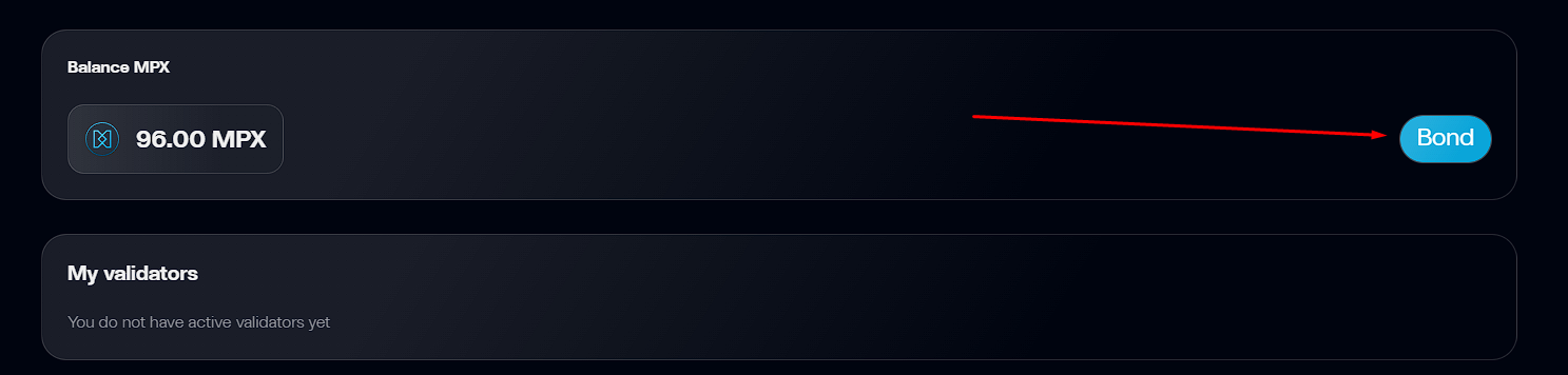 0xDb5C548684221Ce2f55F16456Ec5Cf43a028D8e9) to your wallet and send wallet -0x17CCDfc7Da0273fcd6e89E1a46E89EE9DbC2B800Delegate MPX to BonyNode💚 validator